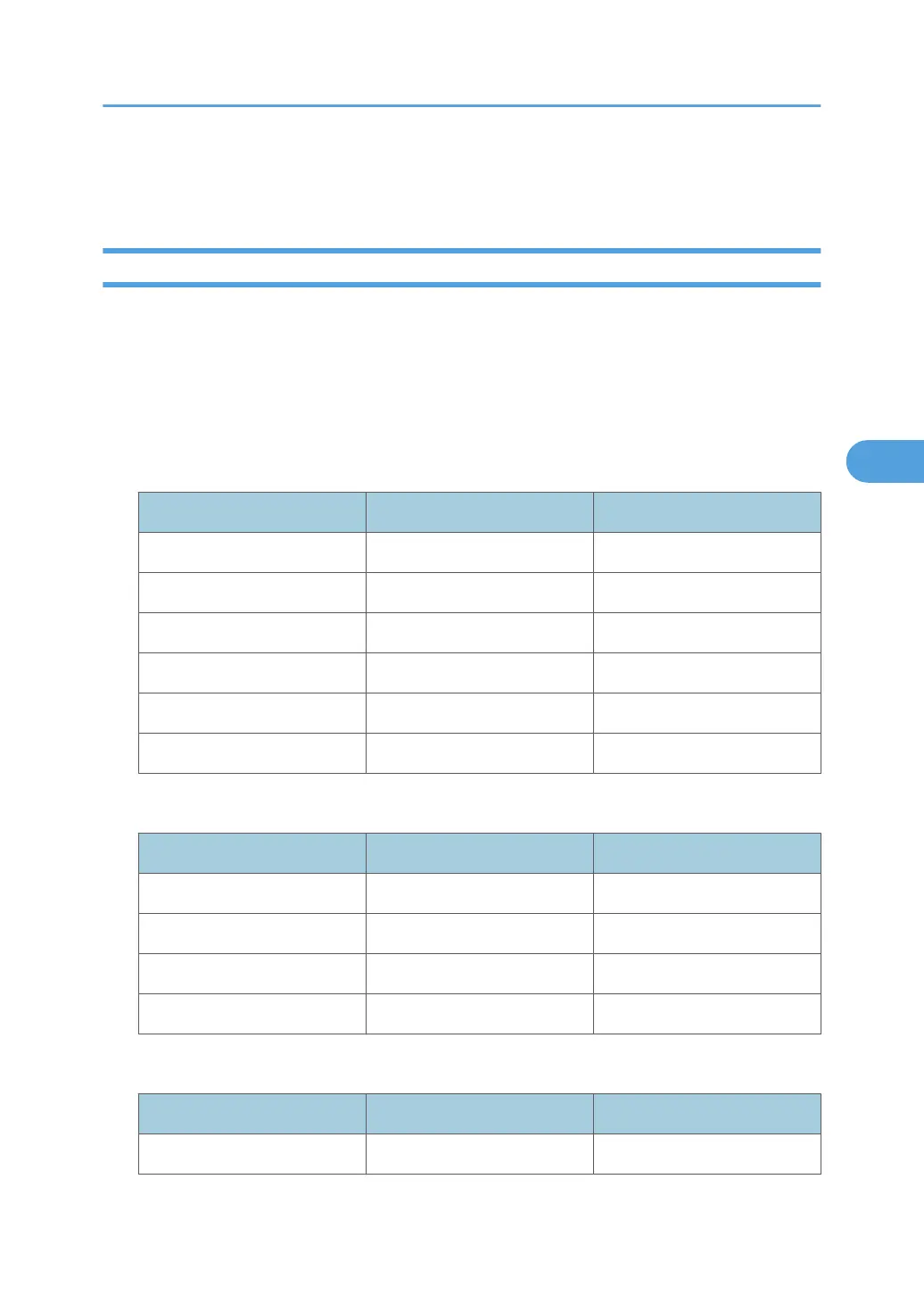 The following tables show Web Image Monitor items that can be viewed or modified depending on the