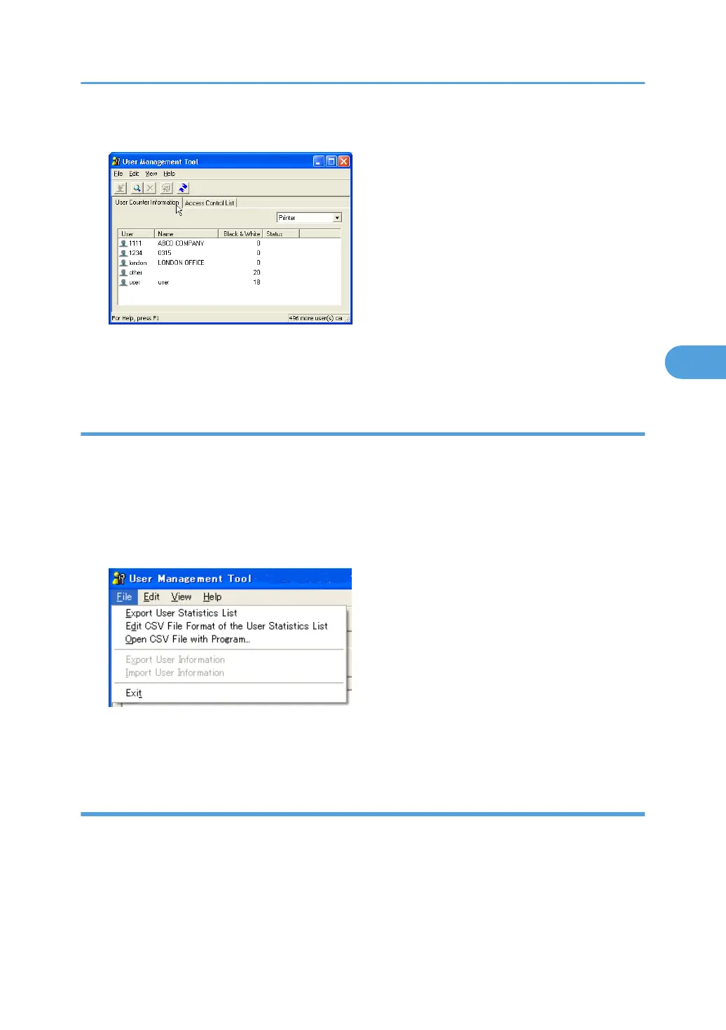 3. On the [File] menu, click [Export User Statistics List].
