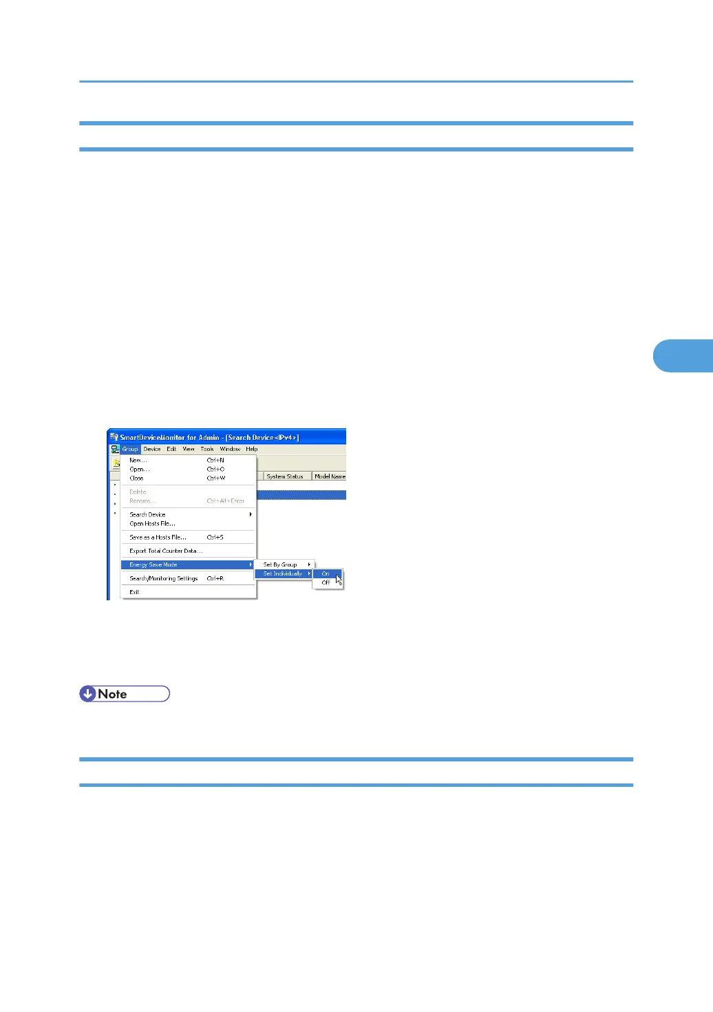 4. Click the [Group] menu, point to [Energy Save Mode], [Set Individually], and then click