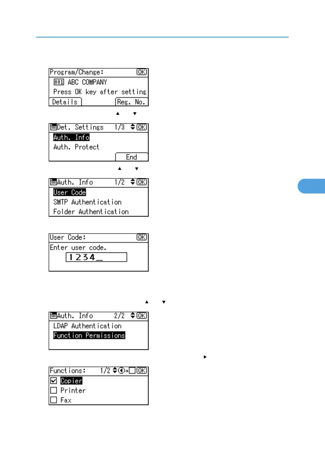 12. Select [Function Permissions] using [ ] or [ ], and then press the [OK] key.