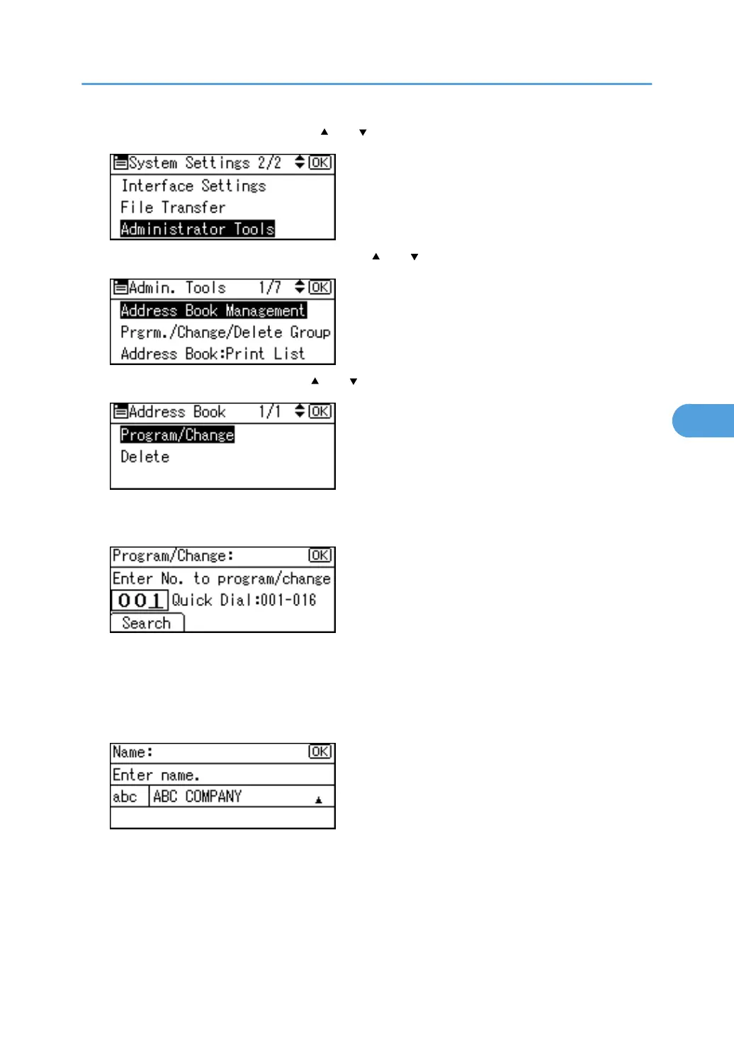 4. Select [Address Book Management] using [ ] or [ ], and then press the [OK] key.