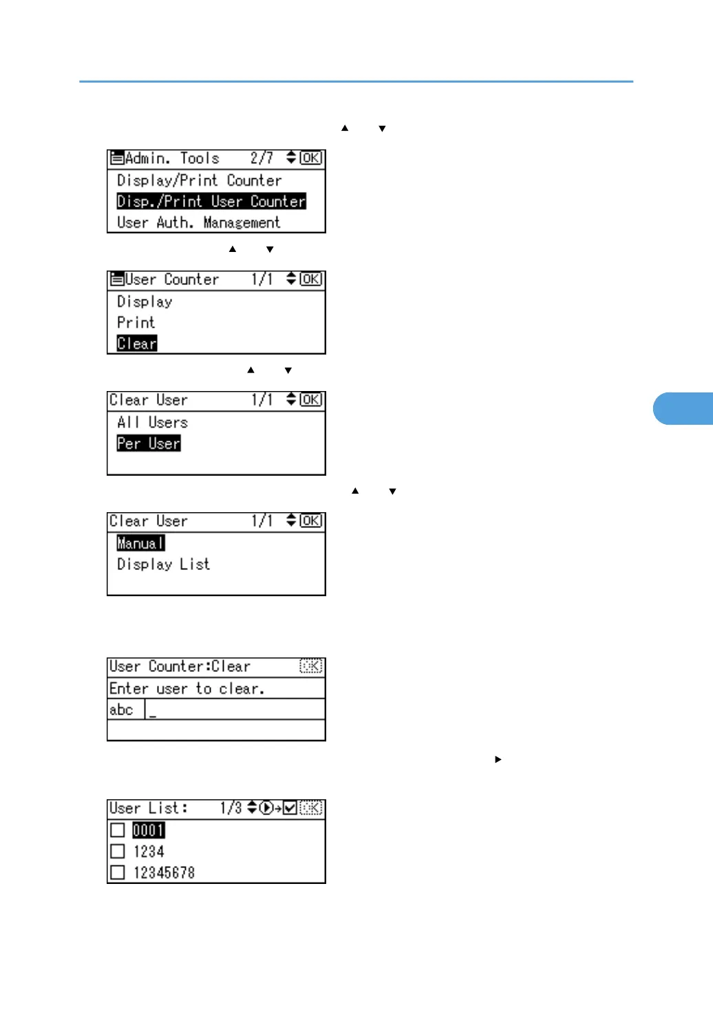 4. Select [Disp./Print User Counter] using [ ] or [ ], and then press the [OK] key.