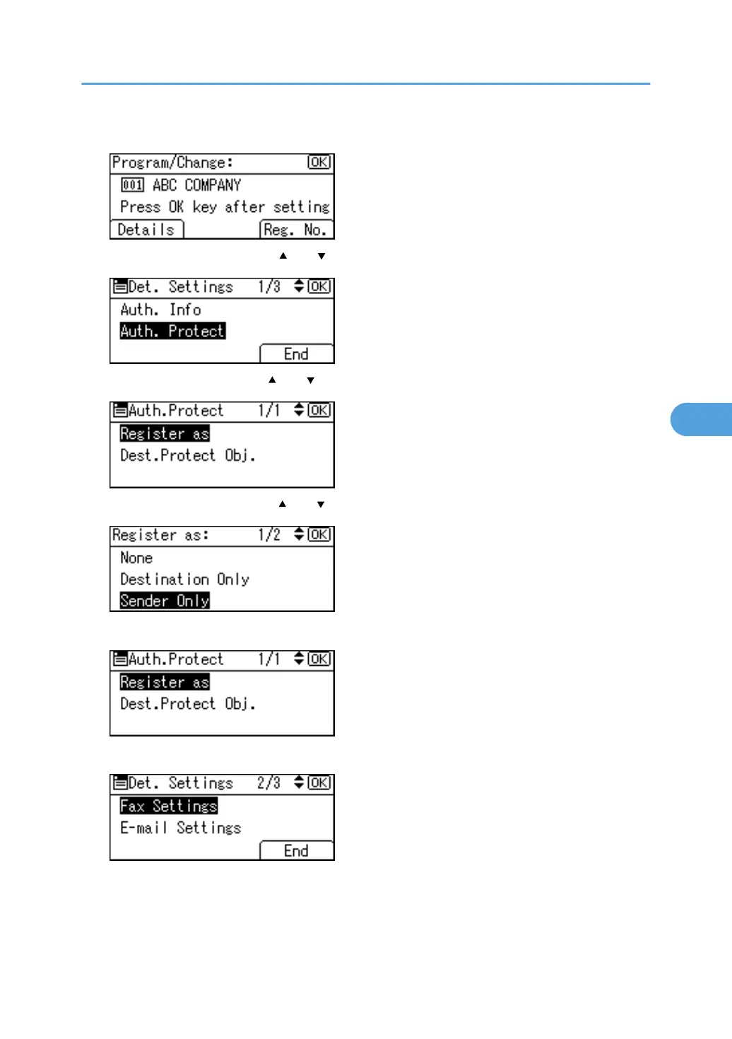 4. Select [Sender Only] using [ ] or [ ], and then press the [OK] key.