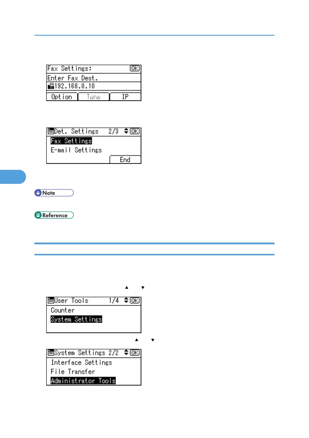 3. Select [Administrator Tools] using [ ] or [ ], and then press the [OK] key.