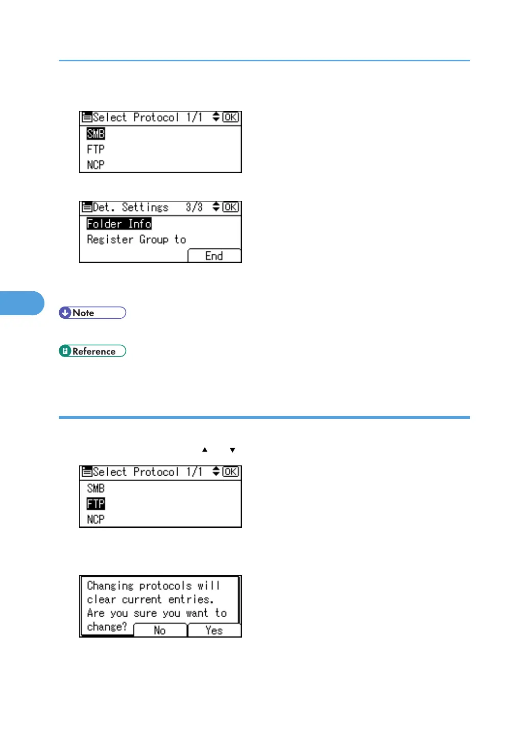 1. Select [FTP] or [NCP] using [ ] or [ ], and then press the [OK] key.