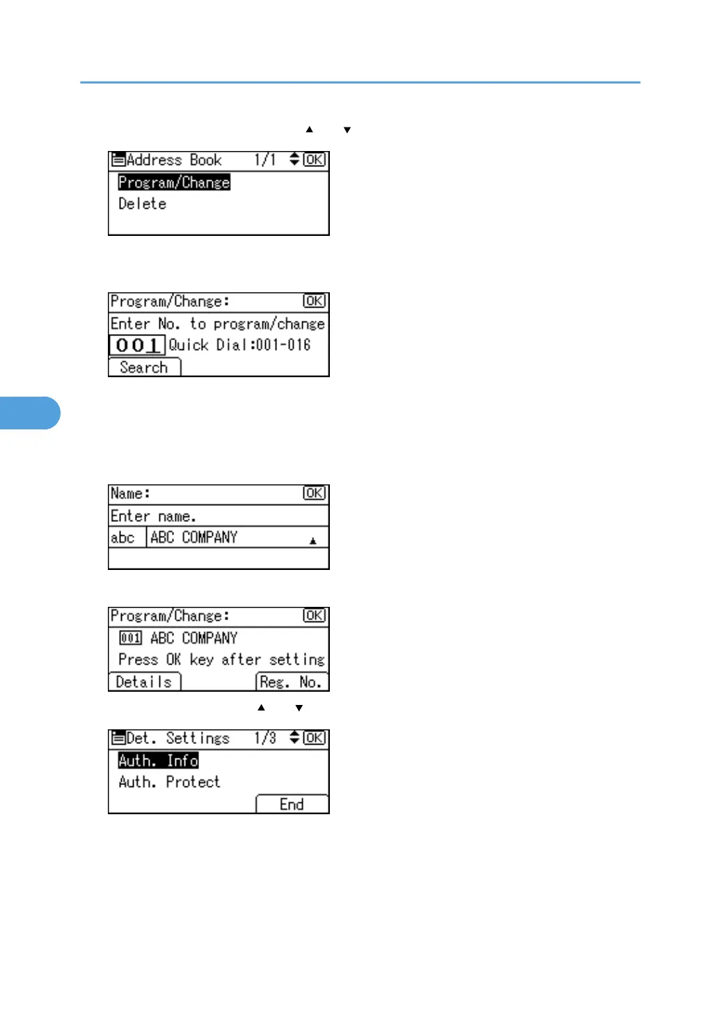 9. Select [Auth. Info] using [ ] or [ ], and then press the [OK] key.