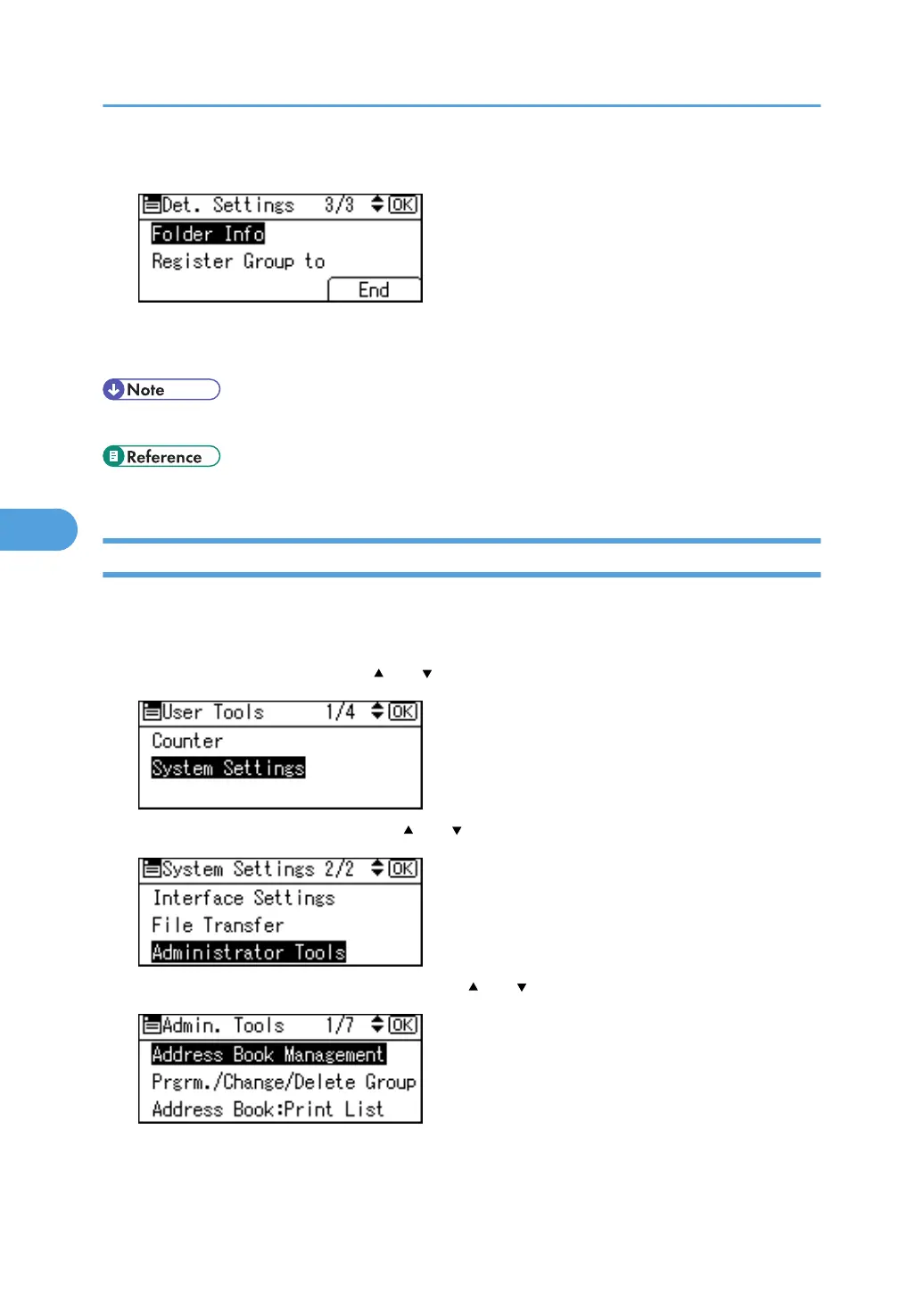 3. Select [Administrator Tools] using [ ] or [ ], and then press the [OK] key.