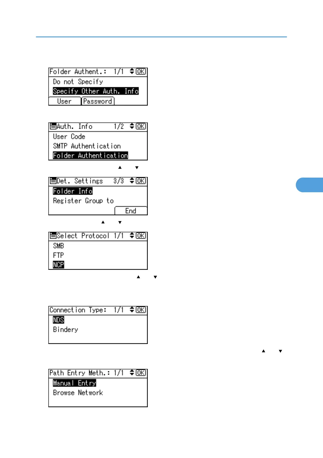 21. Select Manual Entry or Browse Network to specify the path entry method using [ ] or [ ],