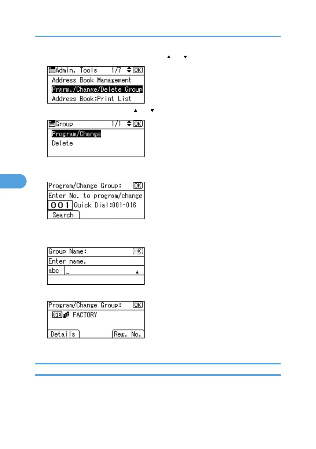 4. Select [Prgrm./Change/Delete Group] using [ ] or [ ], and then press the [OK] key.