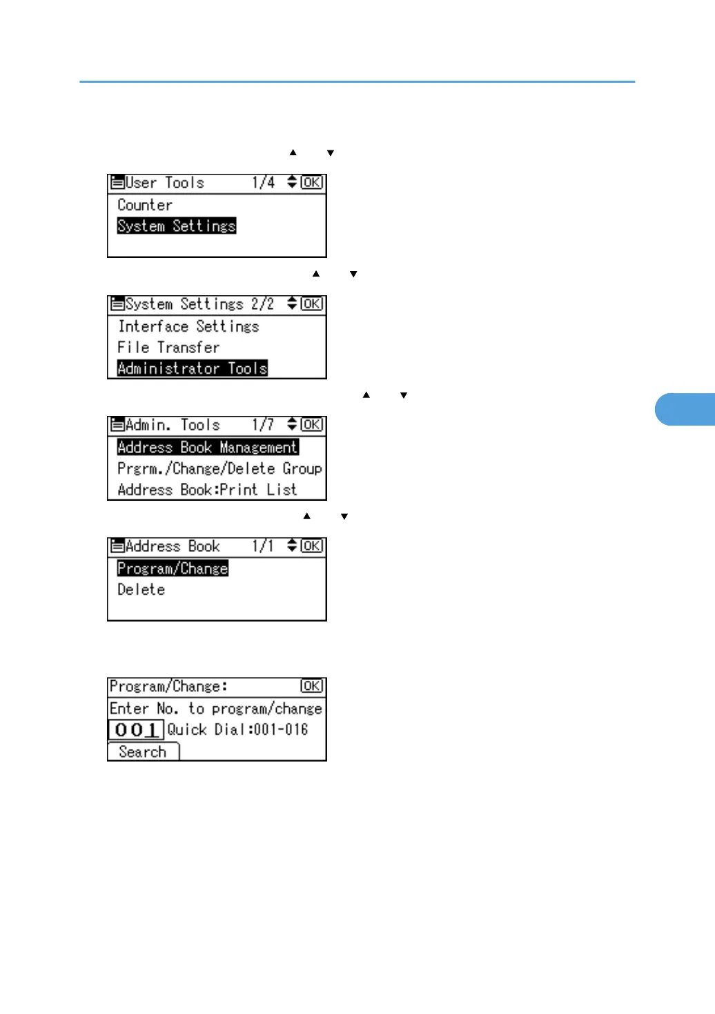 3. Select [Administrator Tools] using [ ] or [ ], and then press the [OK] key.
