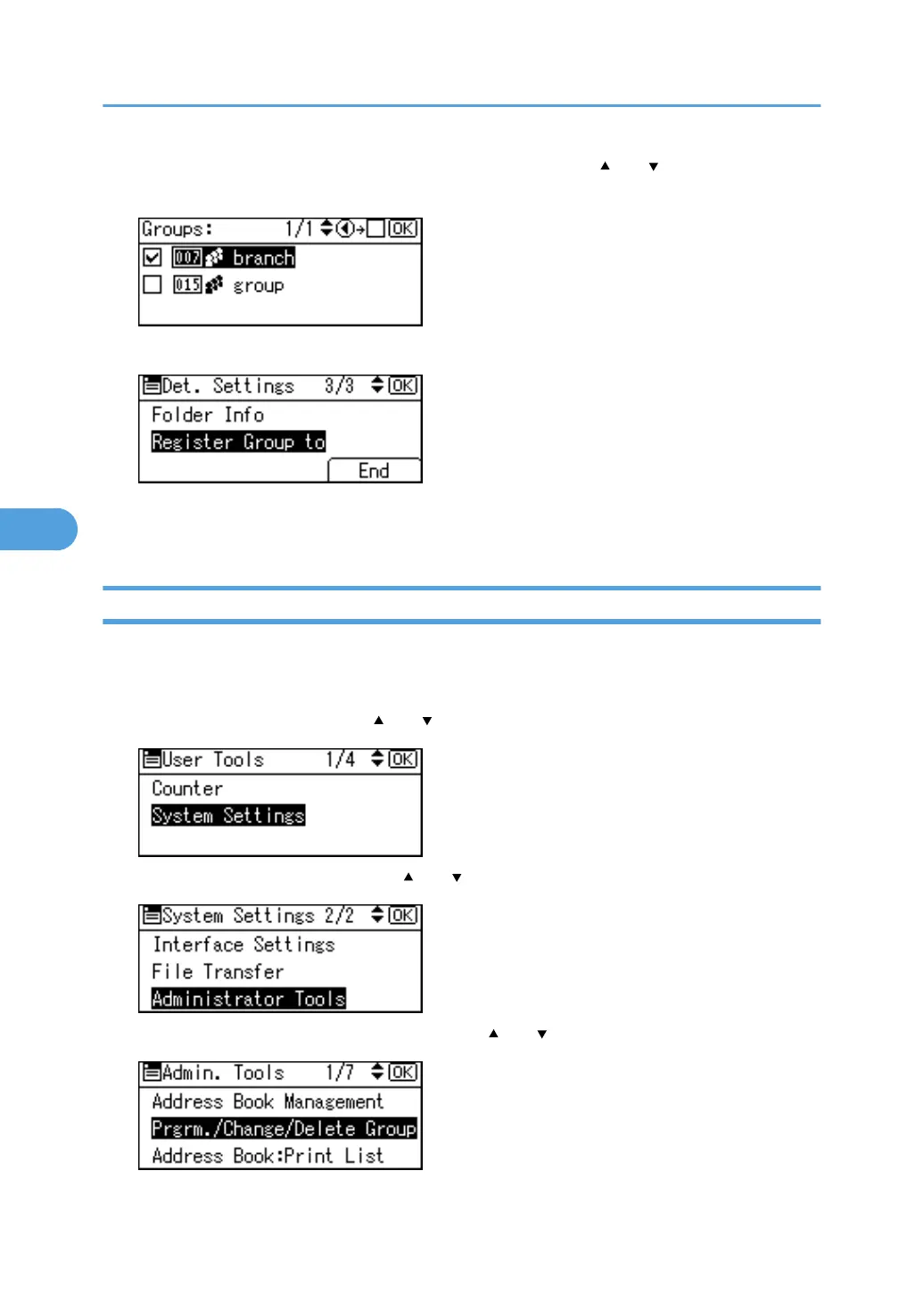 4. Select [Prgrm./Change/Delete Group] using [ ] or [ ], and then press the [OK] key.