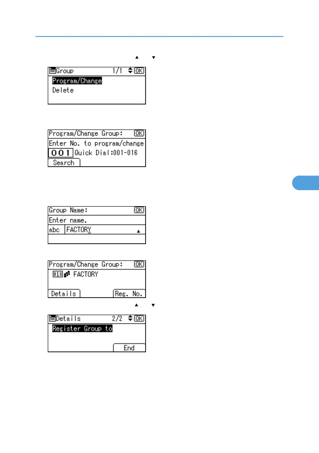 9. Select [Register Group to] using [ ] or [ ], and then press the [OK] key.