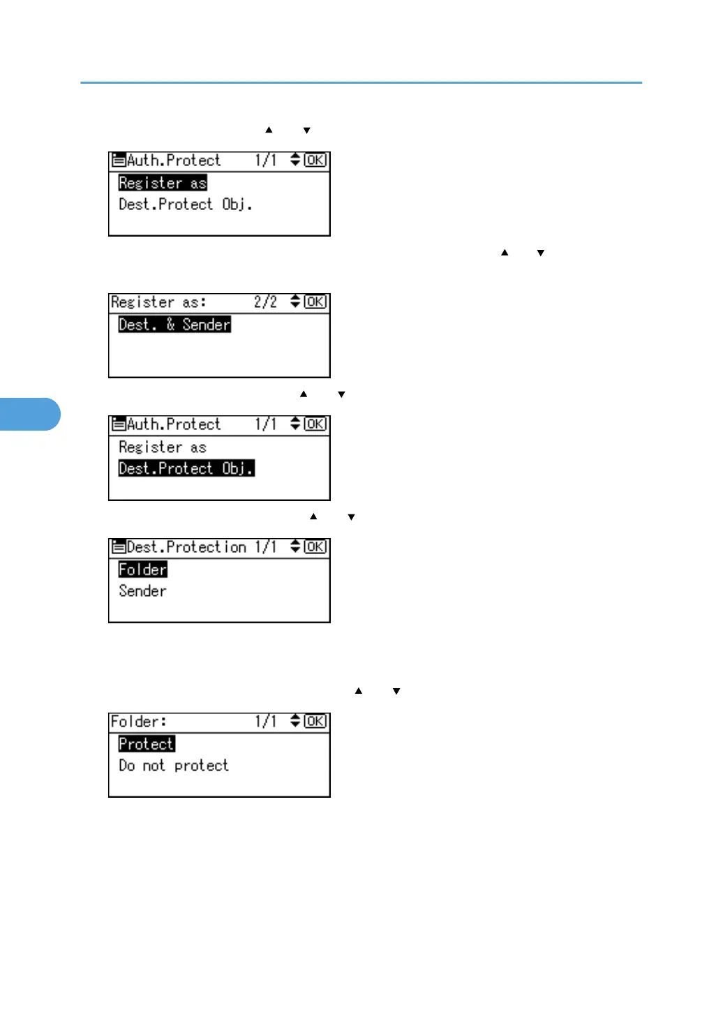 14. Select [Protect] or [Do not protect] using [ ] or [ ], and then press the [OK] key.