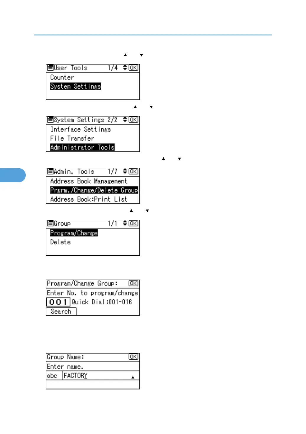 4. Select [Prgrm./Change/Delete Group] using [ ] or [ ], and then press the [OK] key.