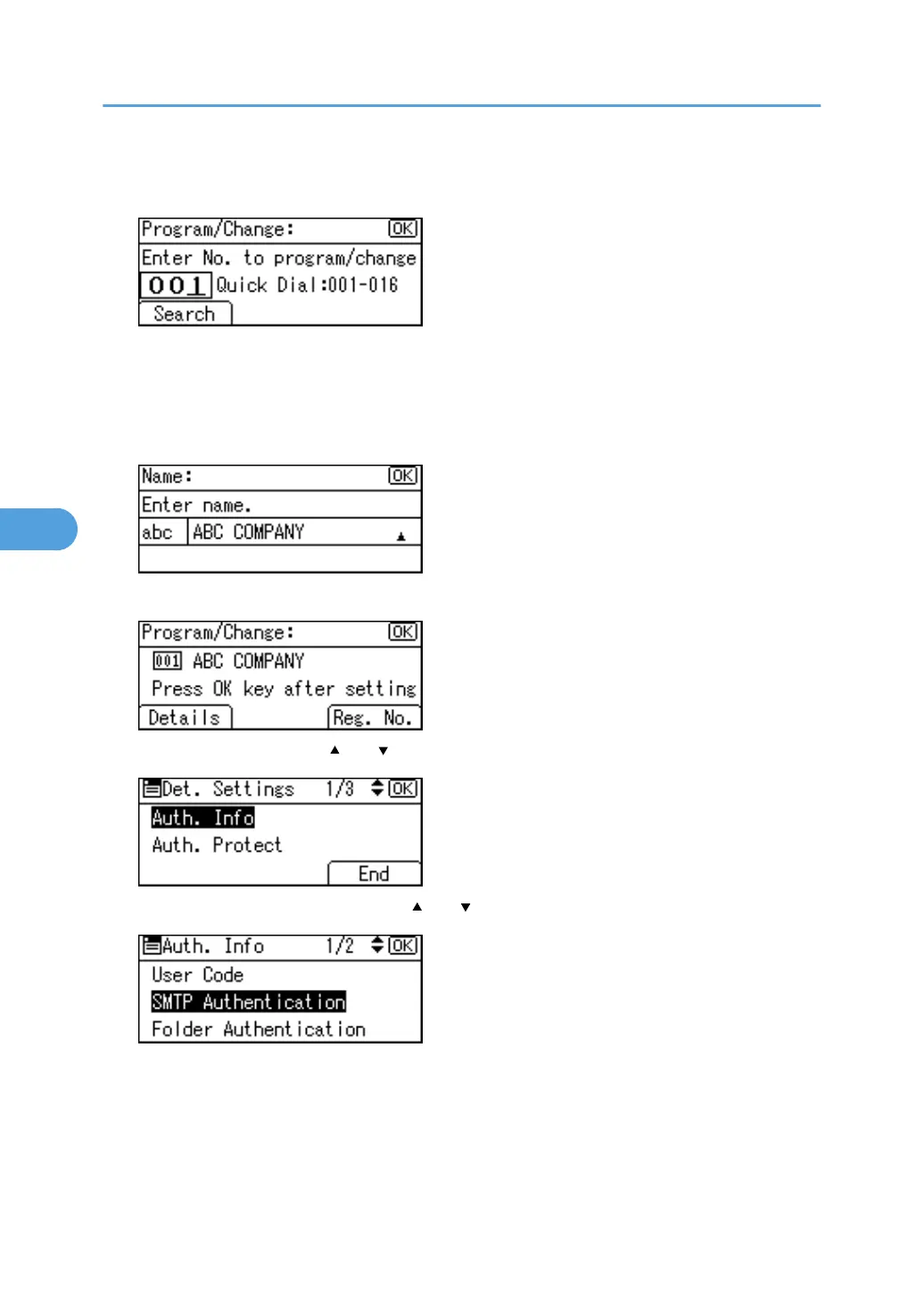 10. Select [SMTP Authentication] using [ ] or [ ], and then press the [OK] key.