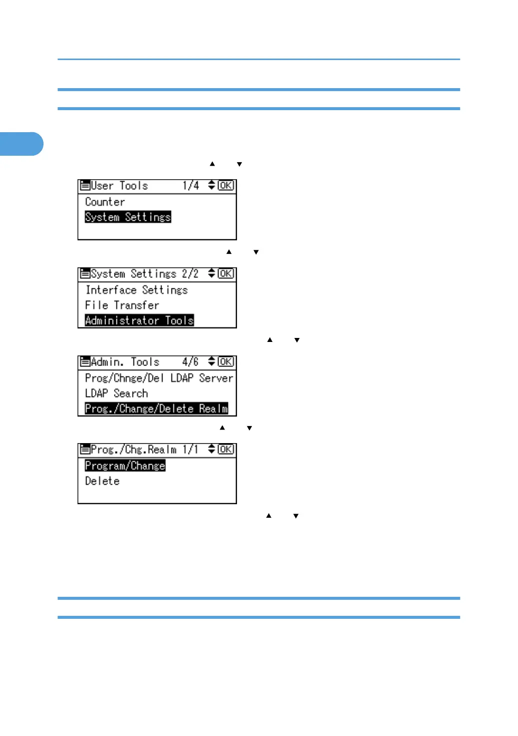 6. Select the Realm you want to change using [ ] or [ ], and then press the [OK] key.