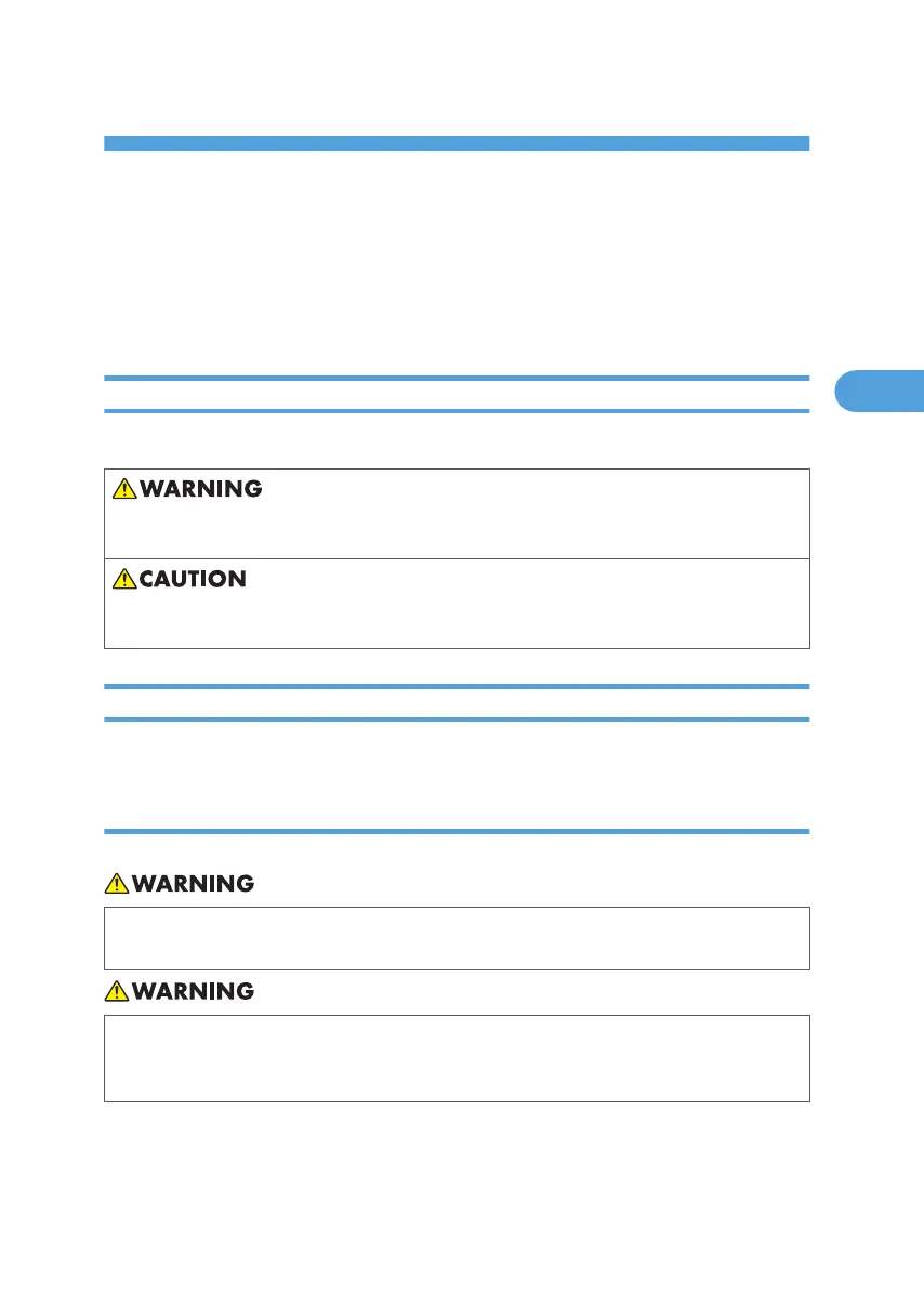 • Do not use flammable sprays or solvents in the vicinity of this machine. Doing so could result in