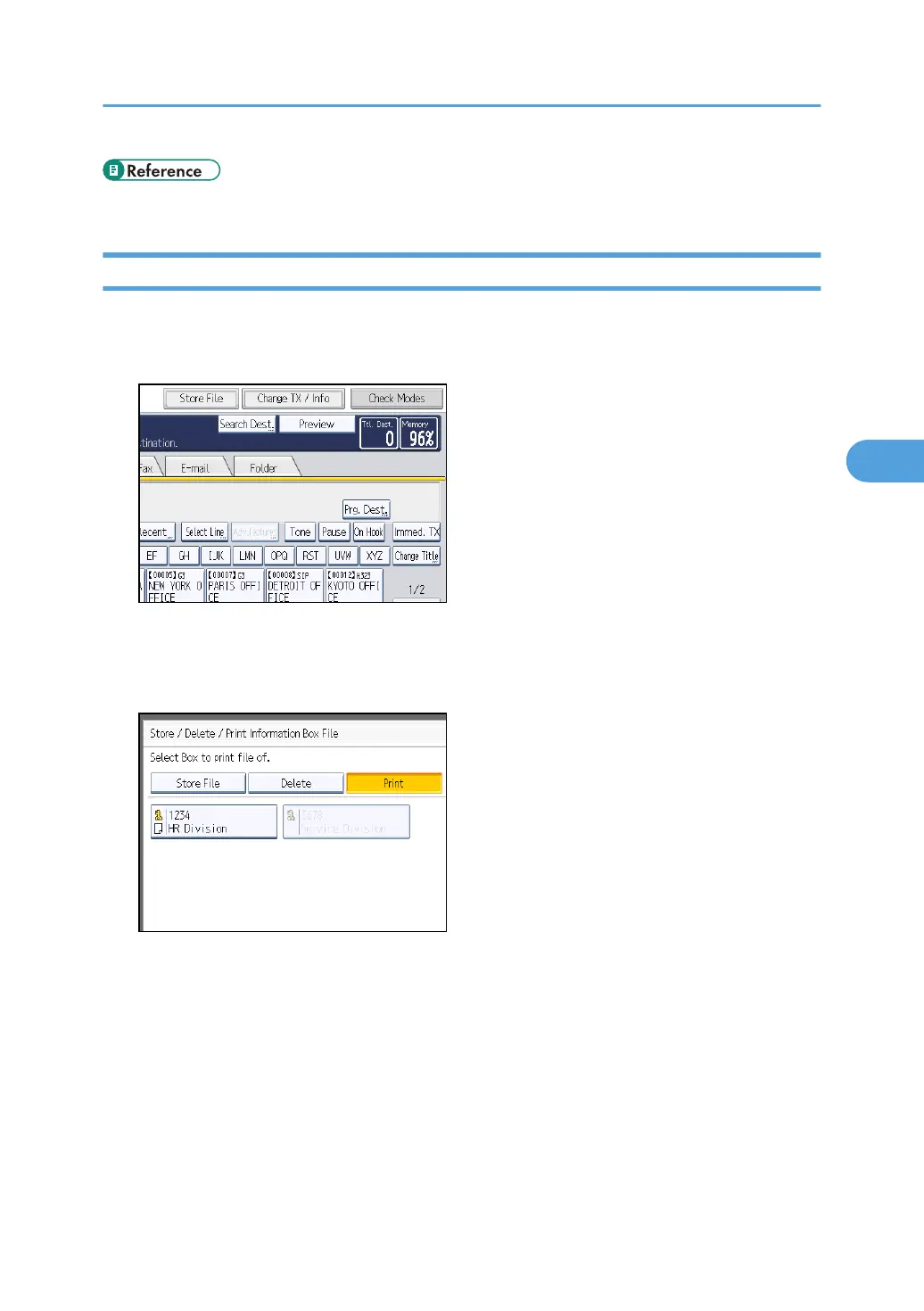 2. Press [Store / Delete / Print Information Box File].