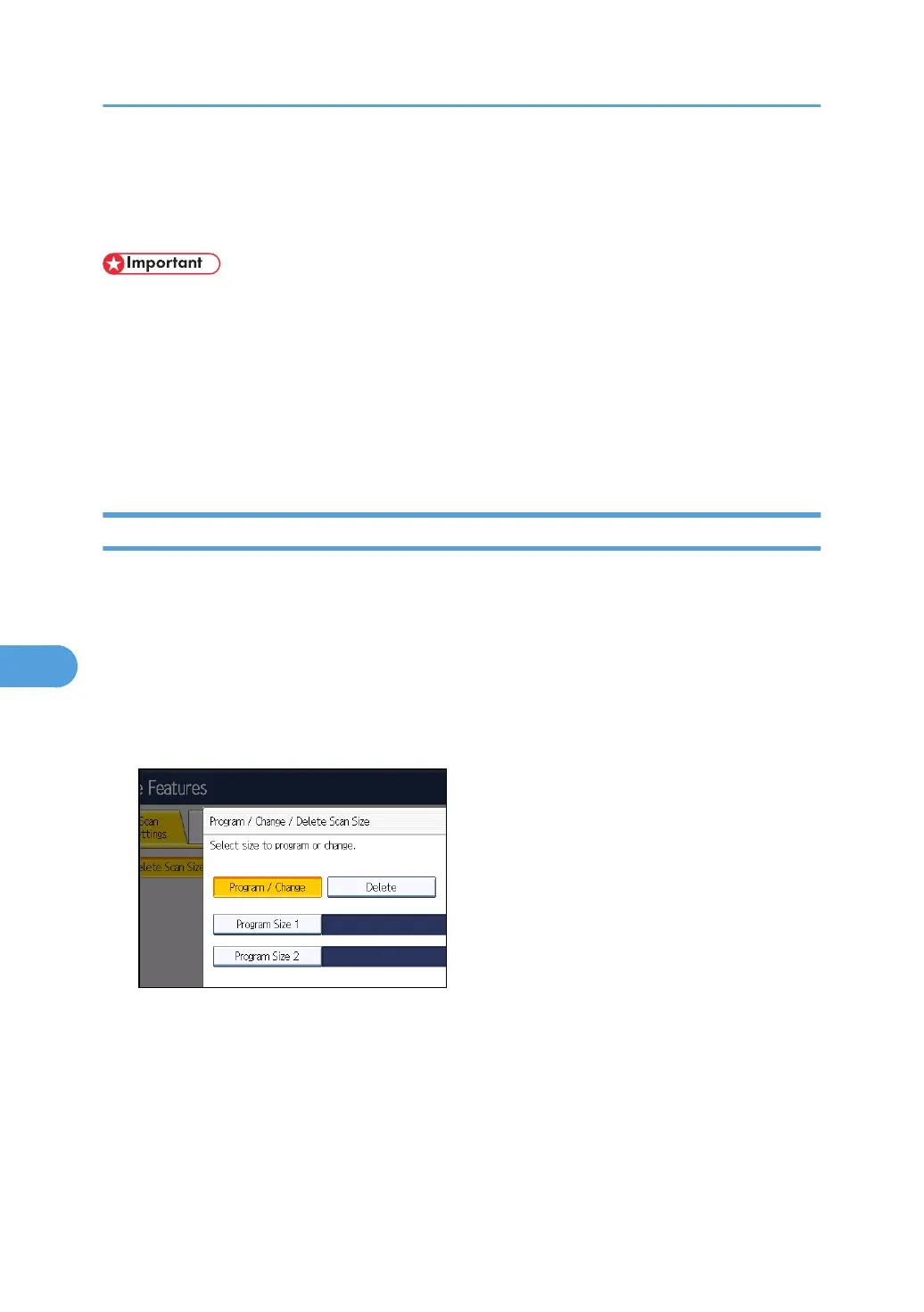 • When programming or changing a scan size, it is recommended that you make a record of the