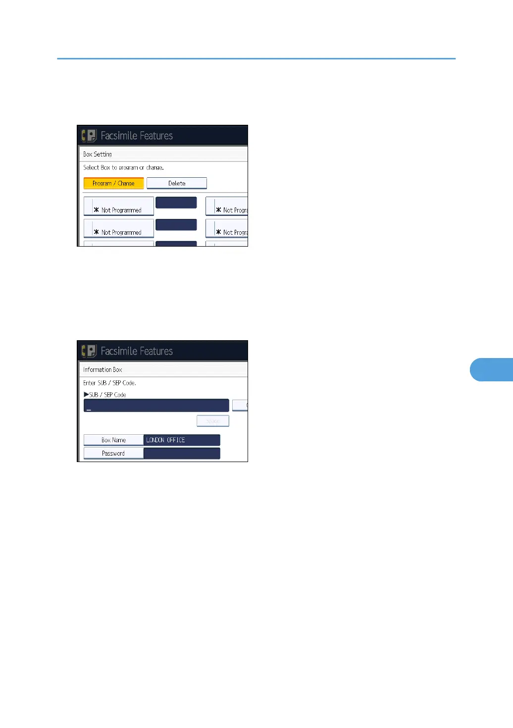 To change the SEP Code, press [Clear], and then try again. To change the box name, press [Box