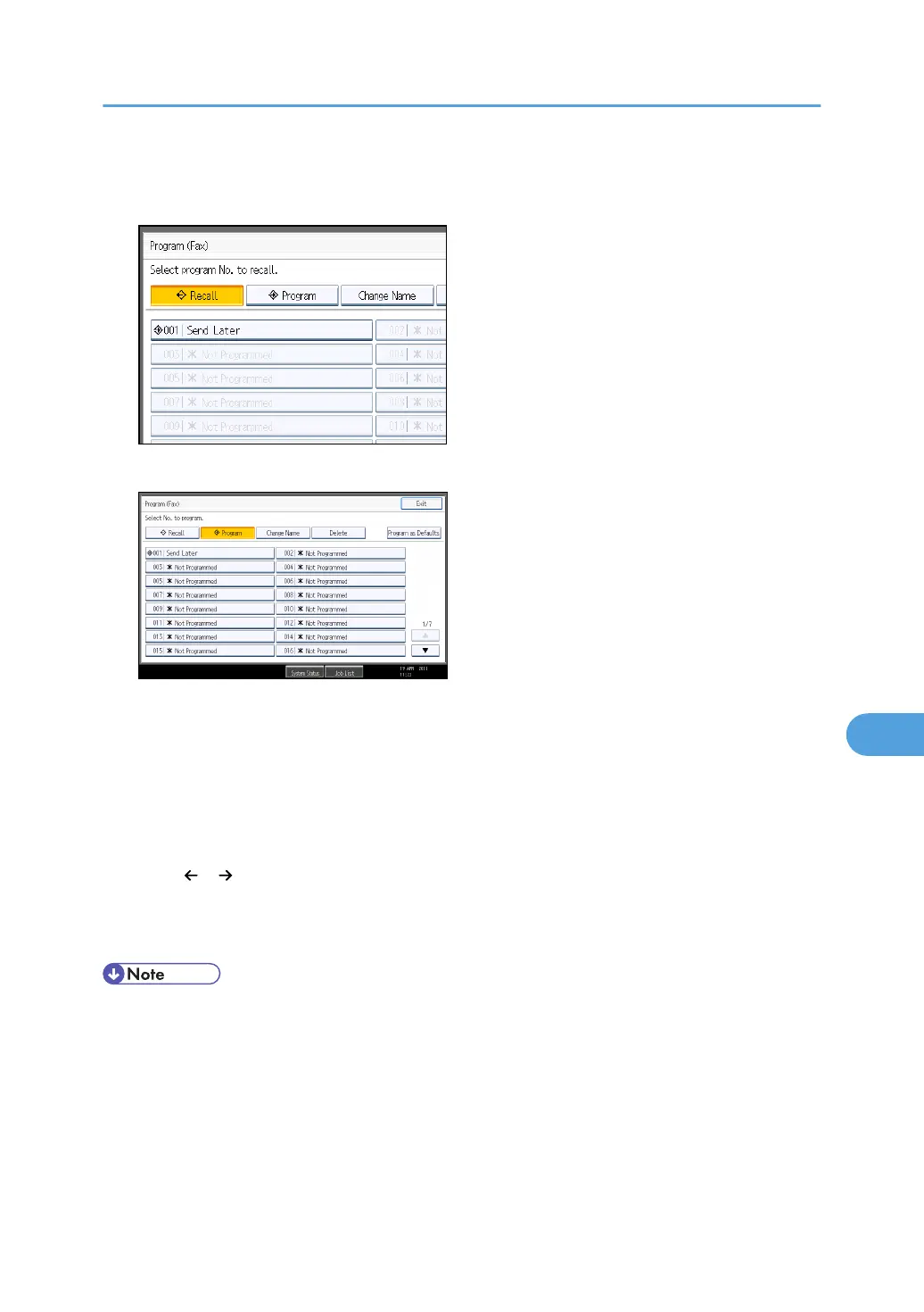 • Use the same procedure to register and change programs. In step 5, select the program number