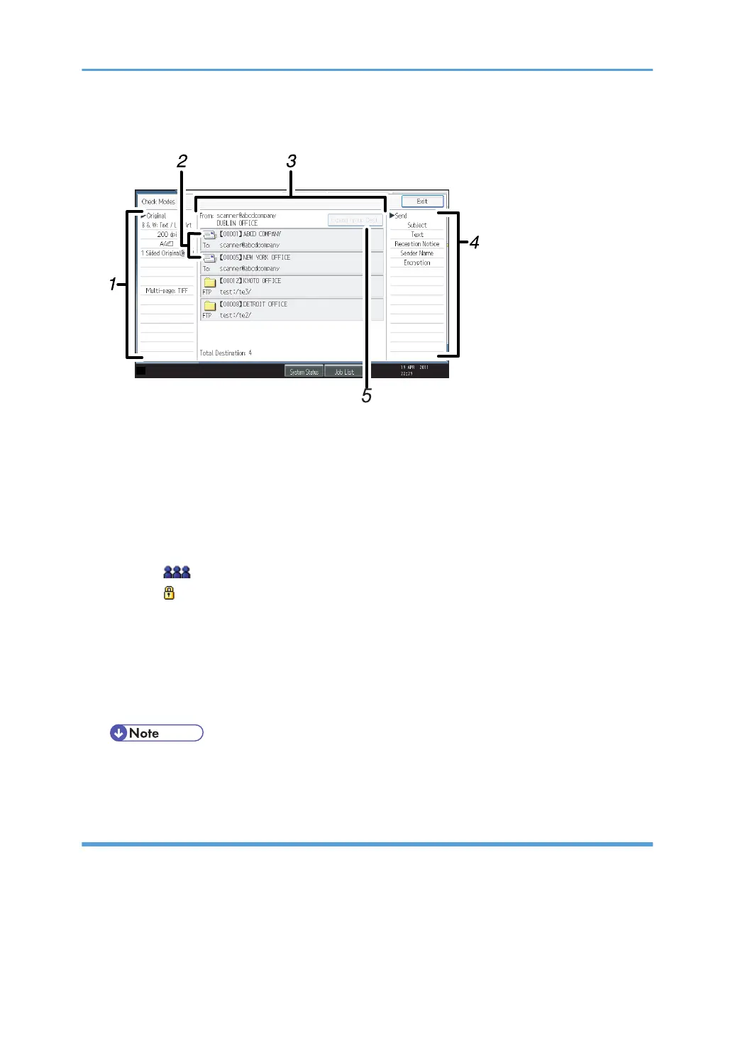 Displays the sender and transmission or delivery destinations.