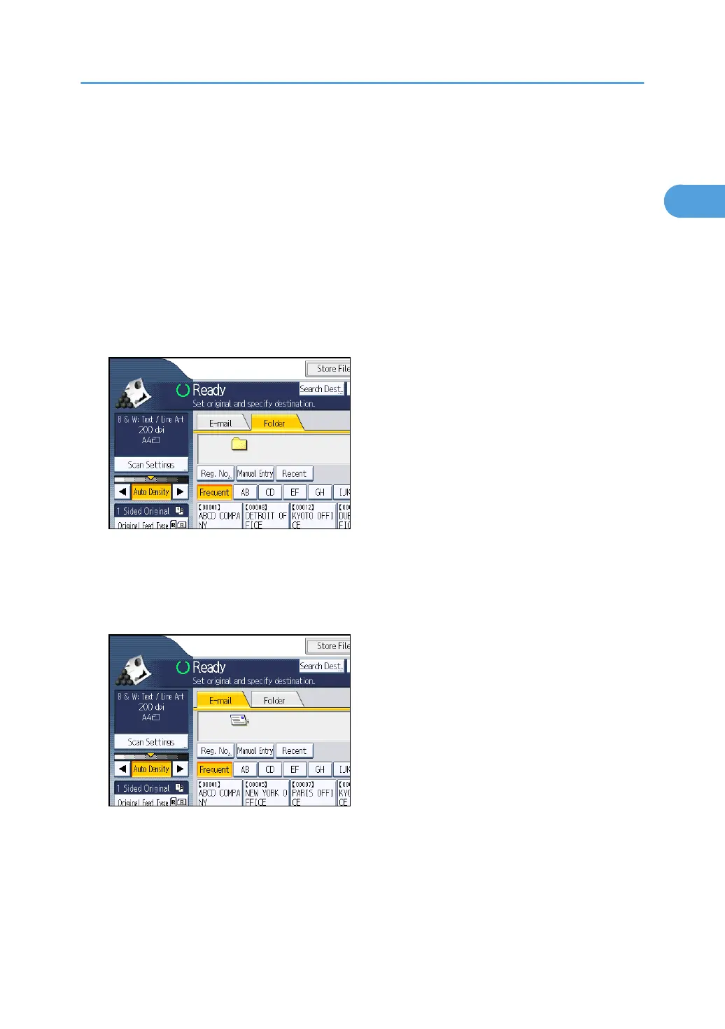 2. If the network delivery scanner screen or Scan to Folder screen appears, switch to the E-