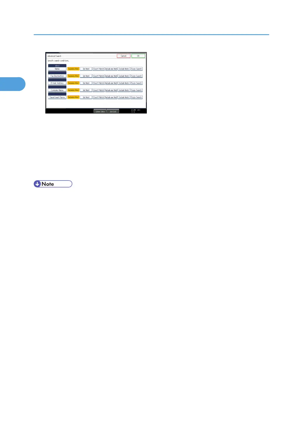 • Search criteria that appear in [Advanced Search], such as [Name], [Fax Destination], [E-mail