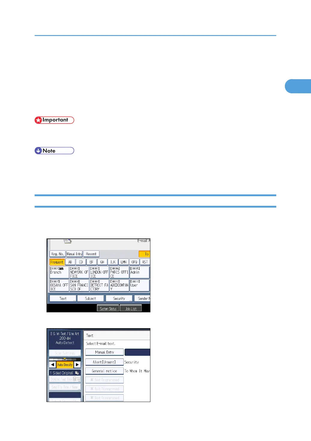• Through Web Image Monitor settings, you can attach a signature that includes sender information,