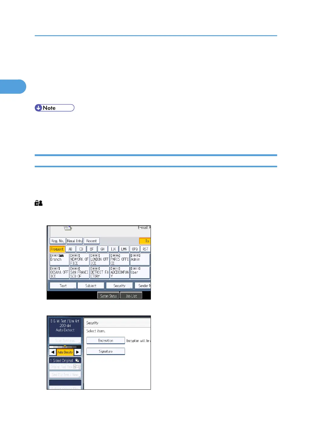 This section explains the procedure for applying security (encryption and a signature) to e-mail.