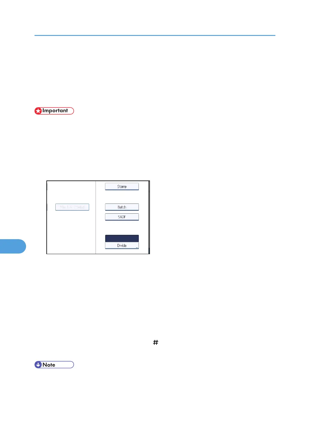 If [SADF] is selected, scanning starts automatically when you place additional originals. Place