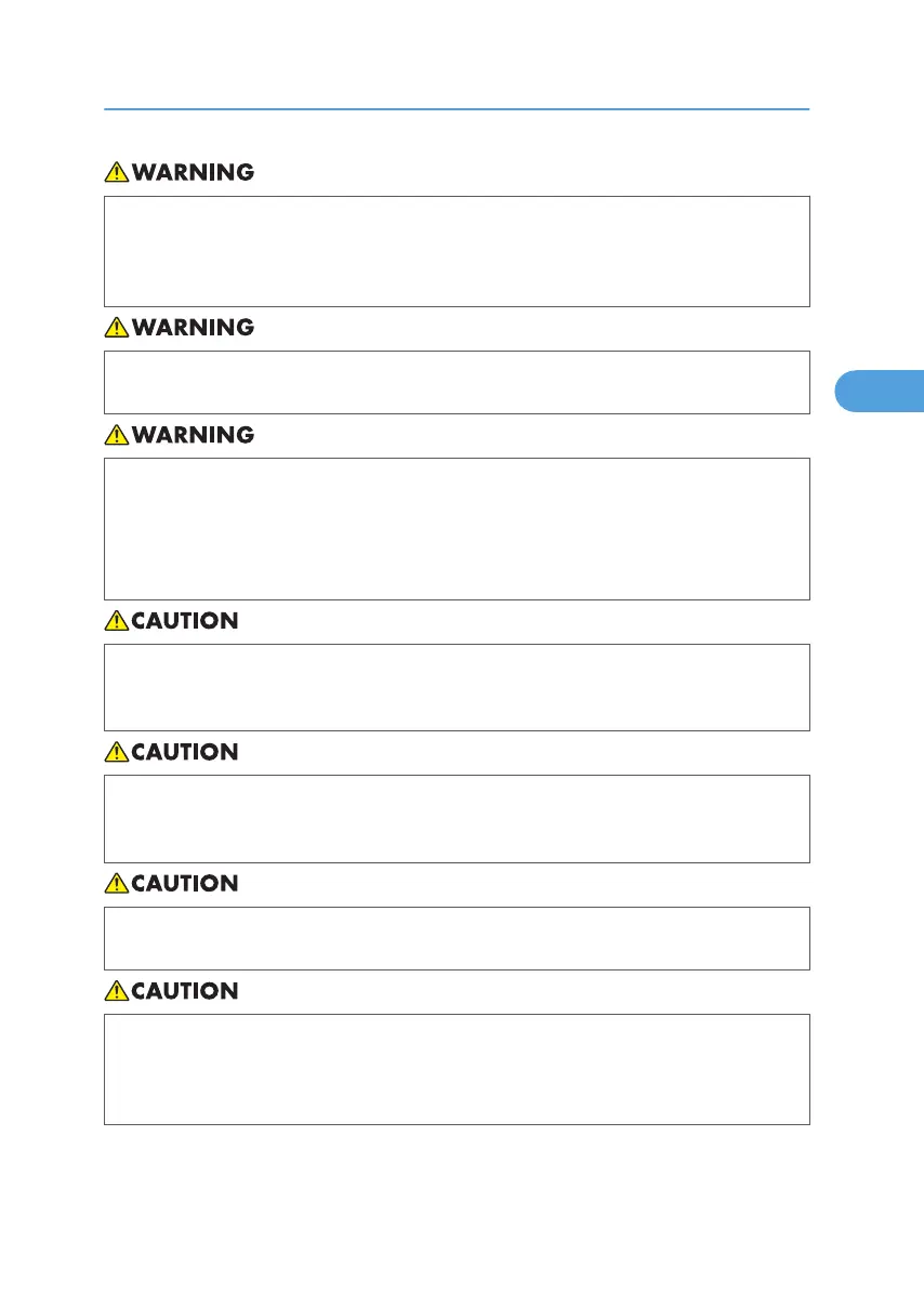 • Do not touch this machine if a lightning strike occurs in the immediate vicinity. Doing so could