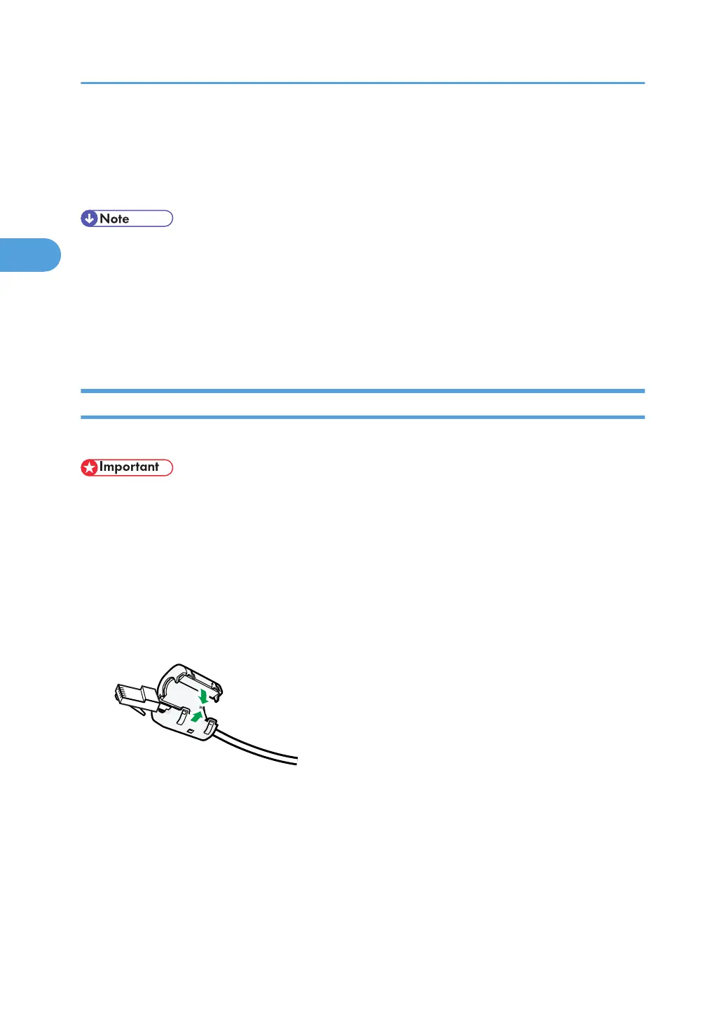 1. Attach the supplied ferrite core at the machine end of the Ethernet interface cable.