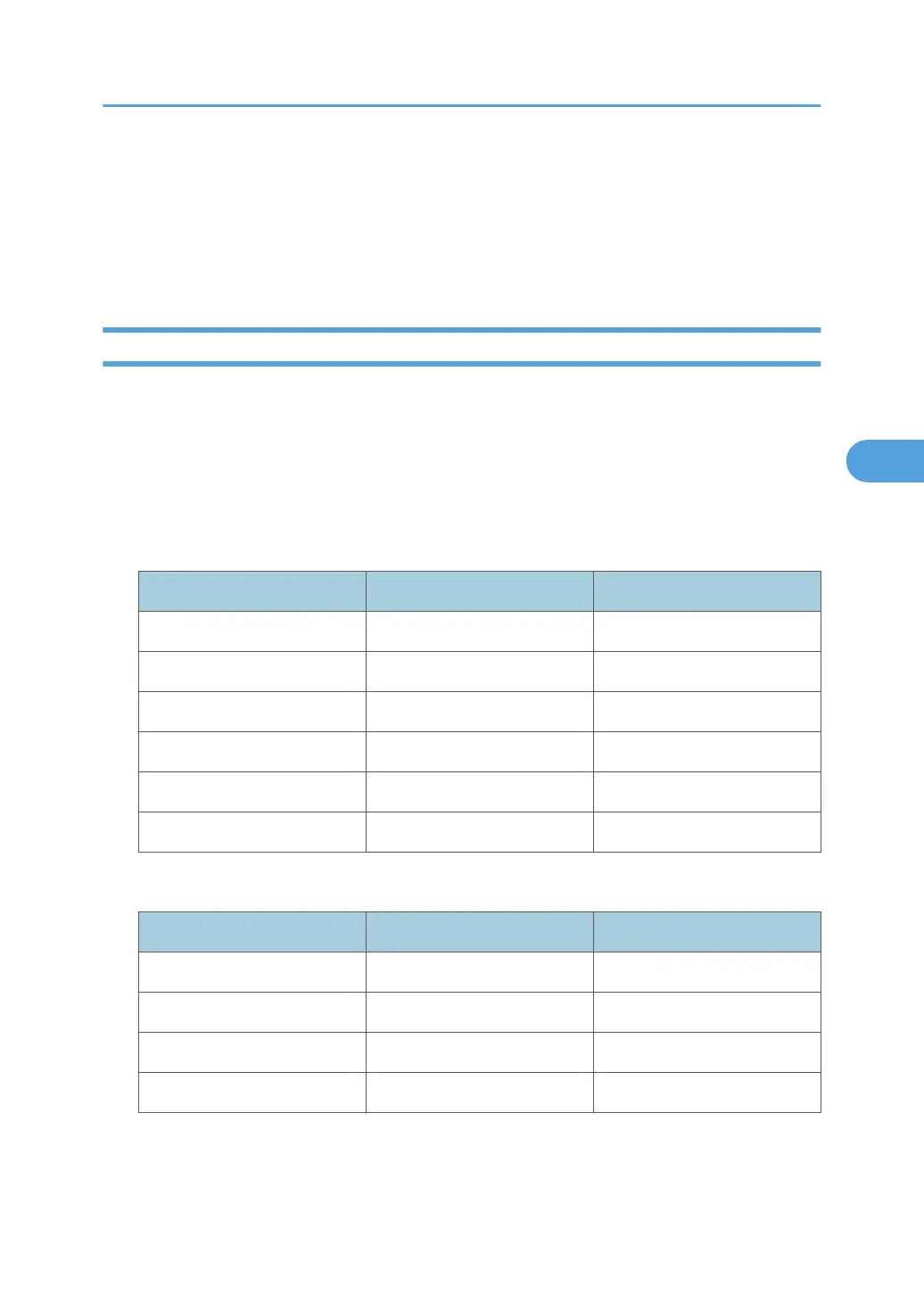 The following tables show Web Image Monitor items that can be viewed or modified depending on the