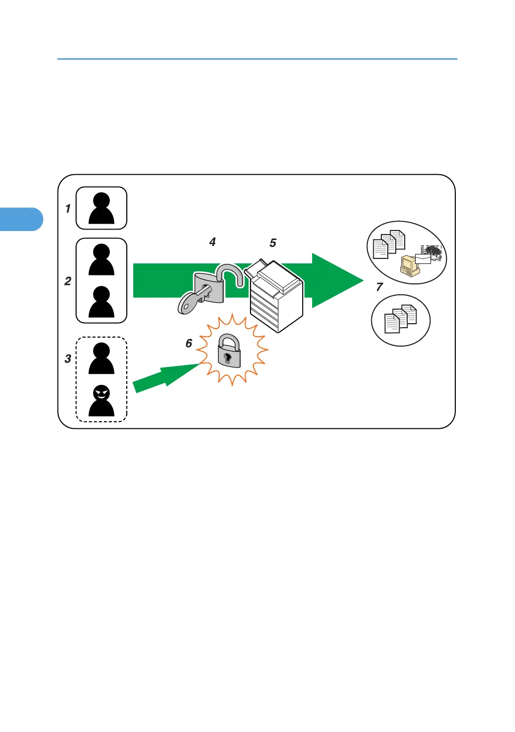 Using authentication, unauthorized users are prevented from accessing the machine.