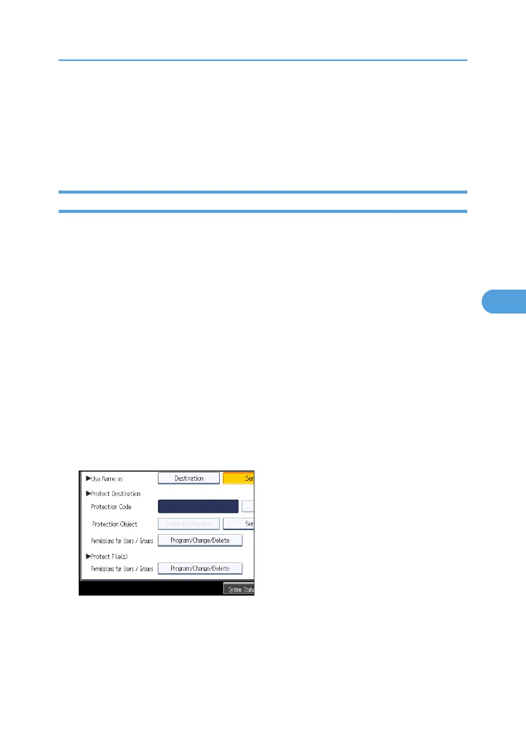 7. Press [Program/Change/Delete] for "Permissions for Users/Groups", under "Protect