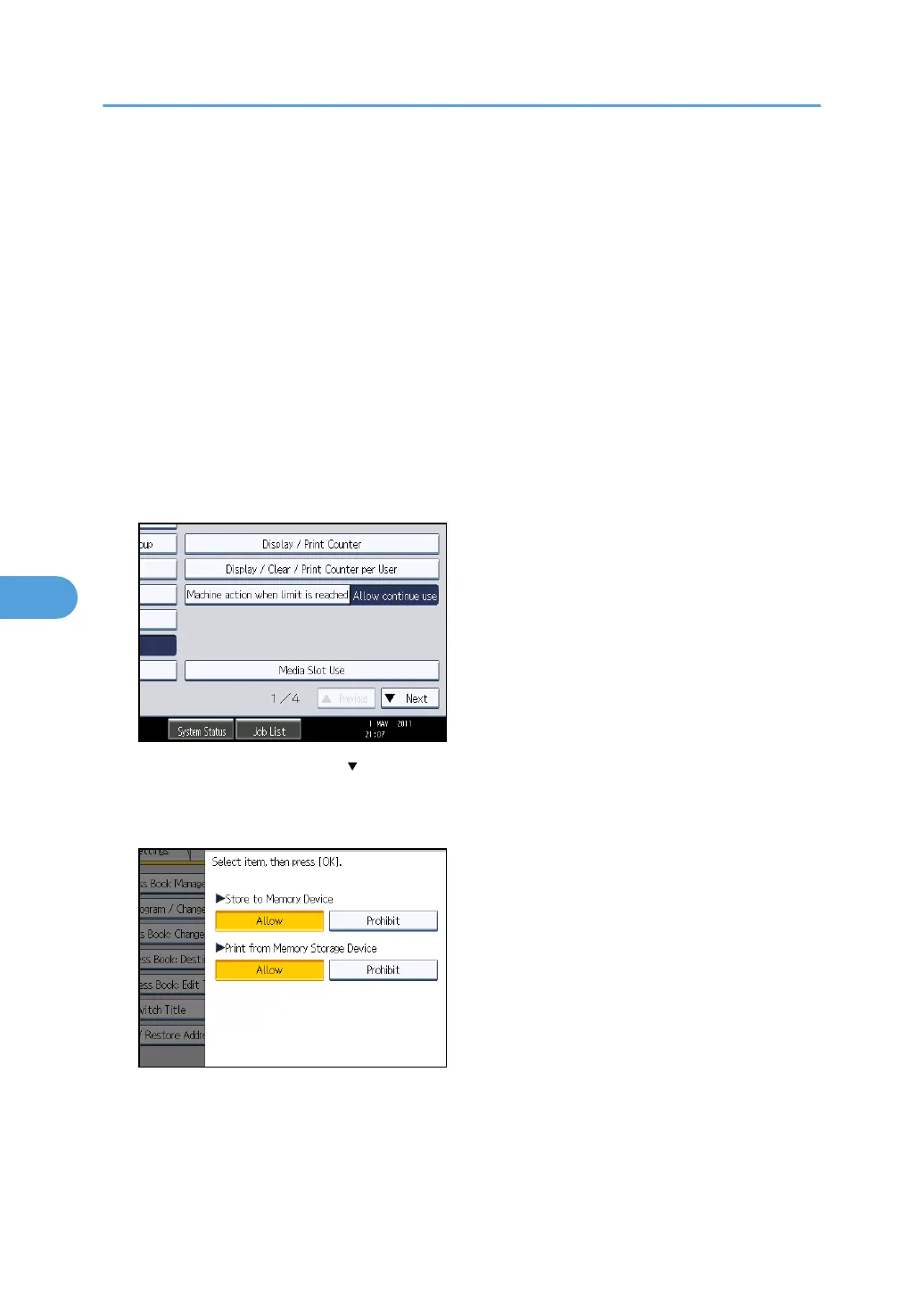 5. To restrict storing files on a removable memory device, press [Prohibit] under "Store to