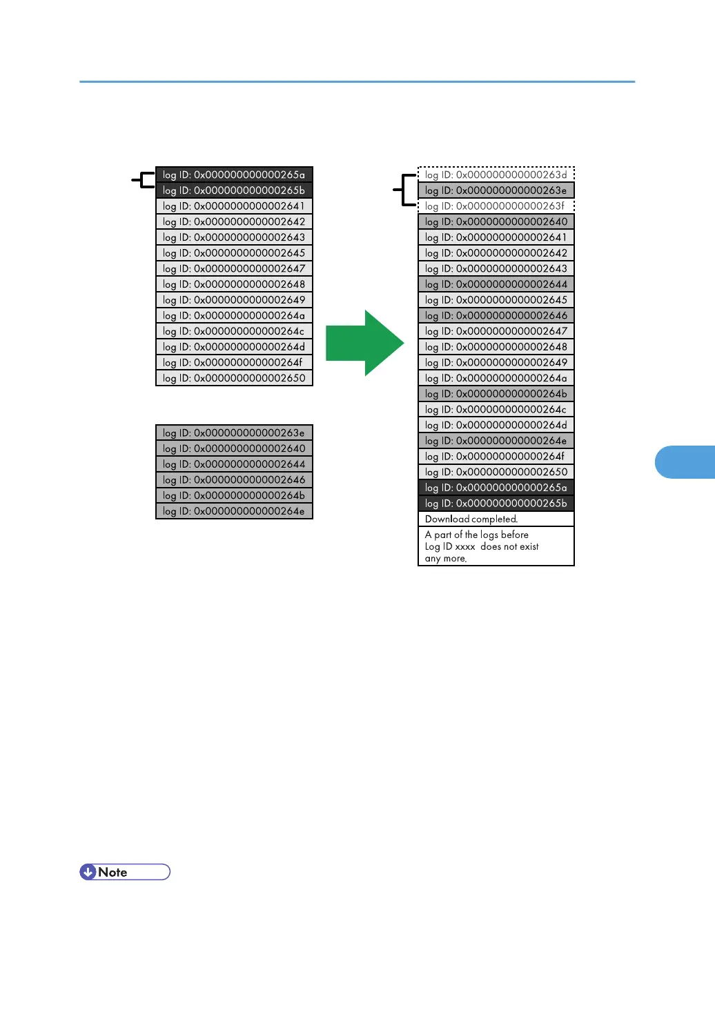 completed. A part of the logs before Log ID xxxx does not exist any more.