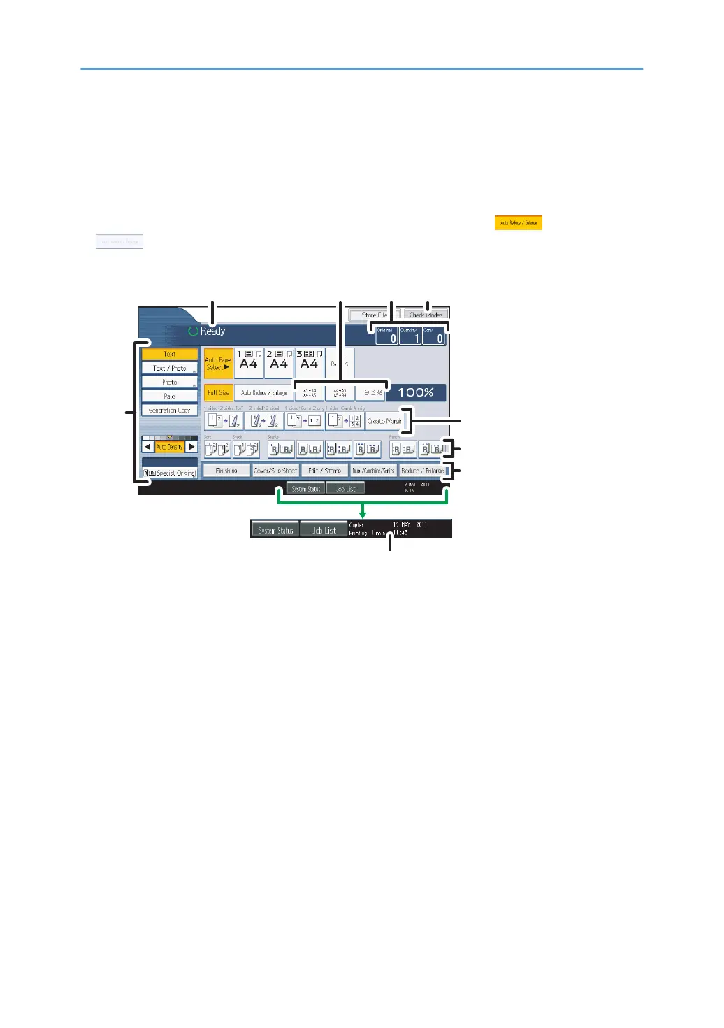 8. Displays the estimated time of completion for the scanning and printing of a copy job. This time