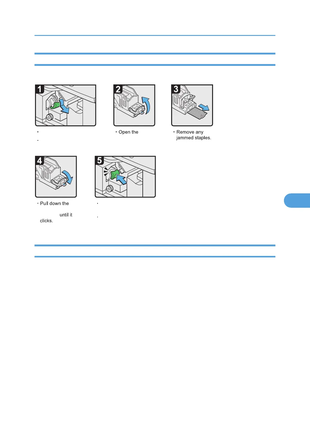 This section describes how to remove jammed staples from 1000-Sheet Finisher.