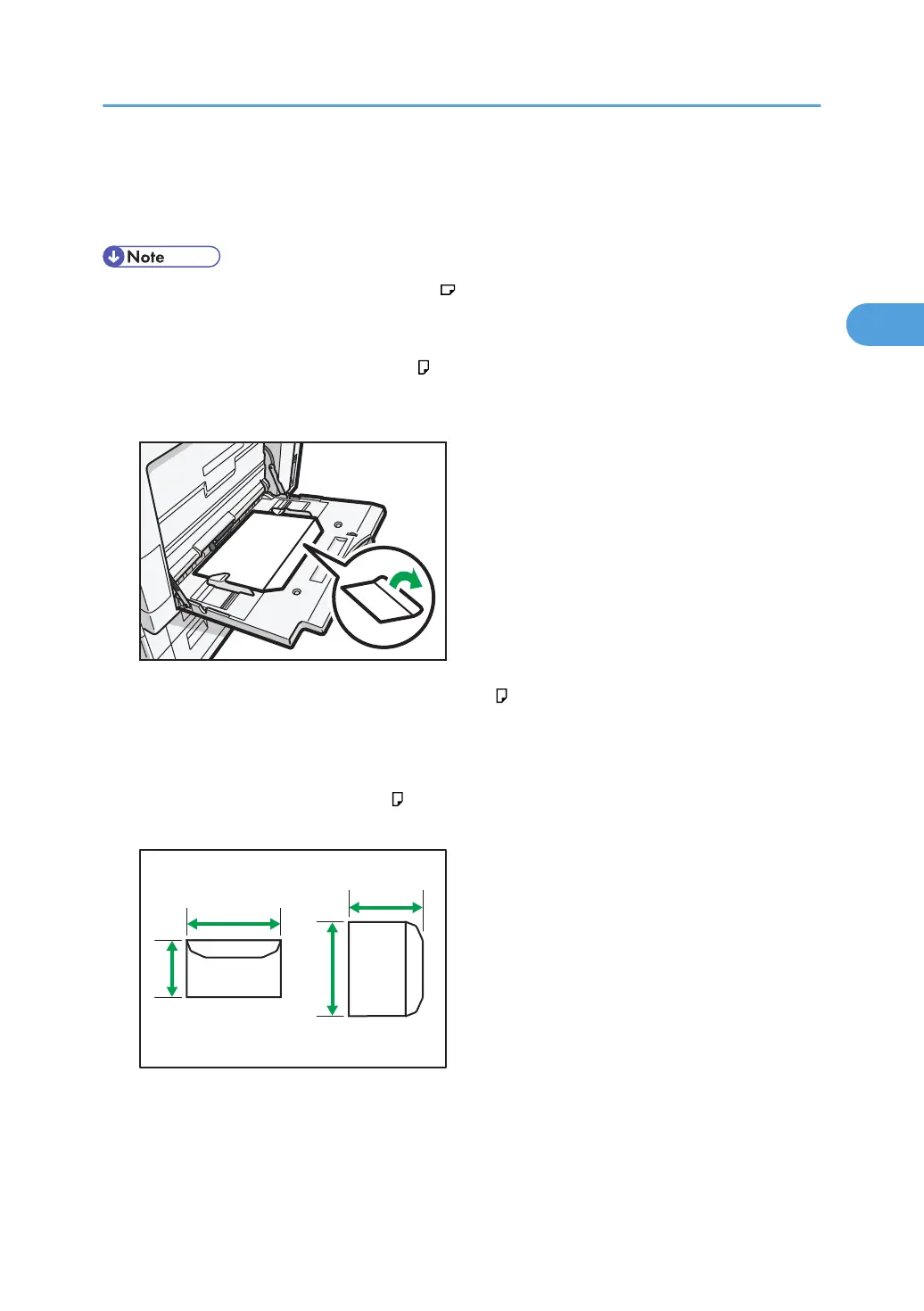• When loading envelopes in the landscape ( ) orientation, place the original on the exposure