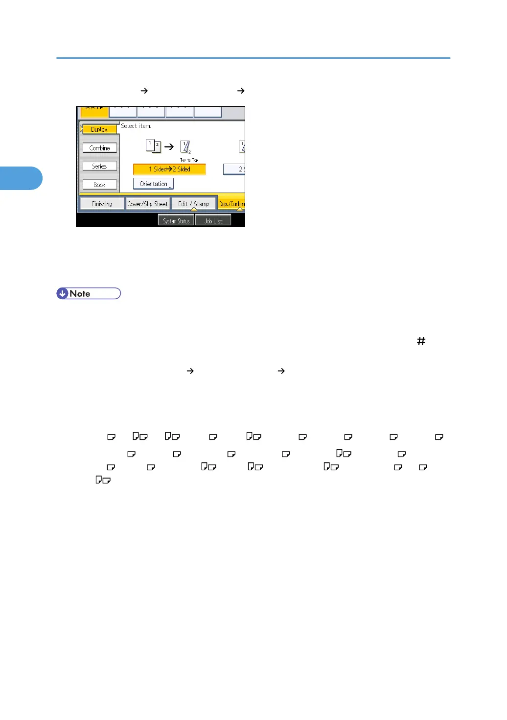 2 Sided] or [2 Sided 2 Sided] directly by pressing the copy