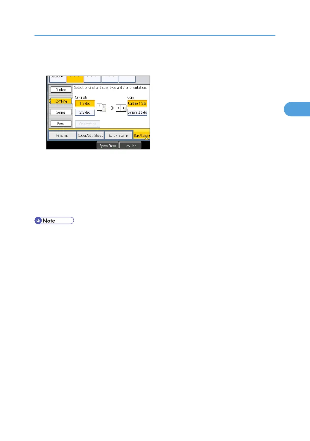 3. Select [1 Sided] or [2 Sided] for Original, and then press [Combine 2 Sides] for Copy.