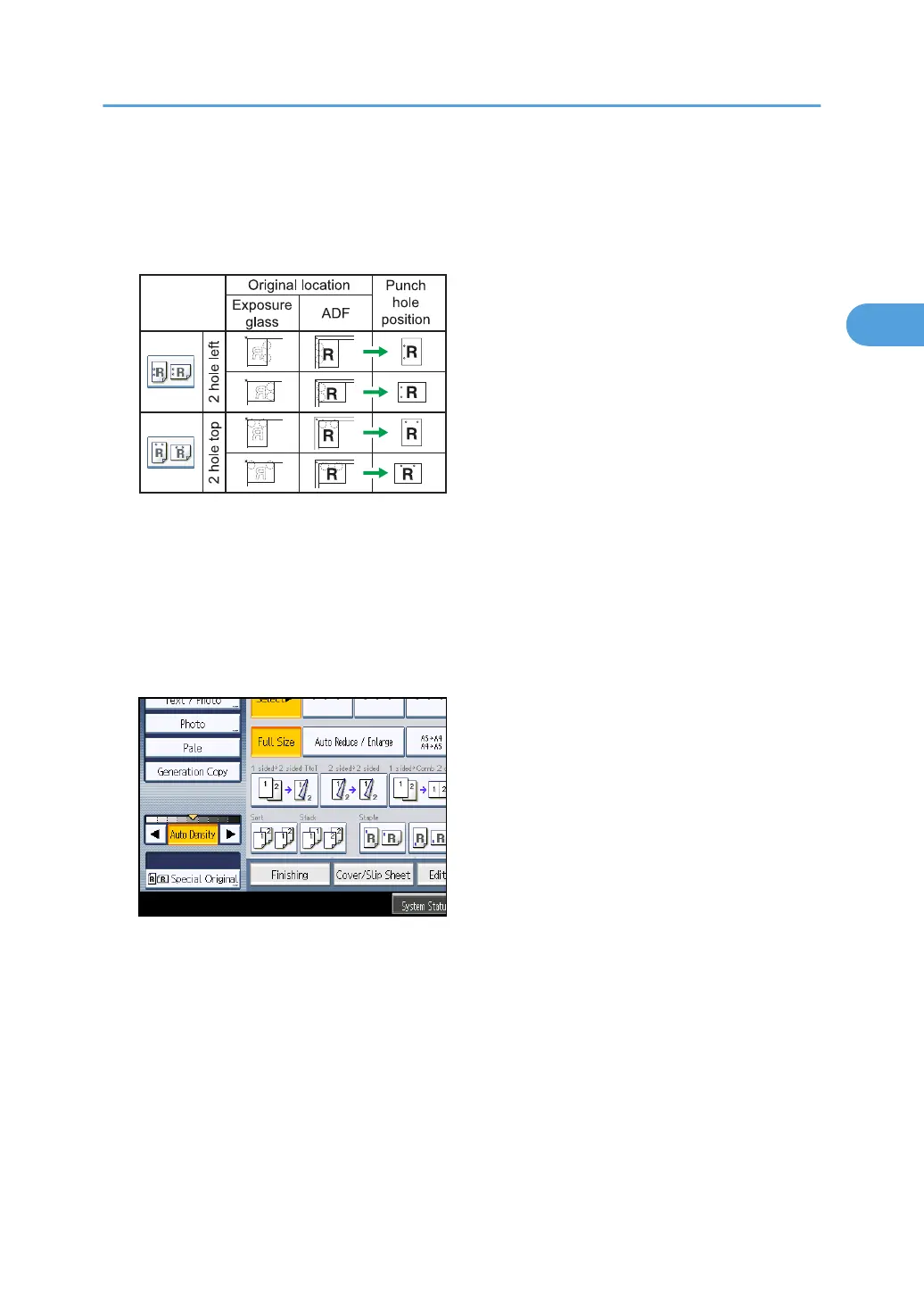 You cannot punch holes in this position when copying onto B4 JIS, 8 × 13 or larger, or 5