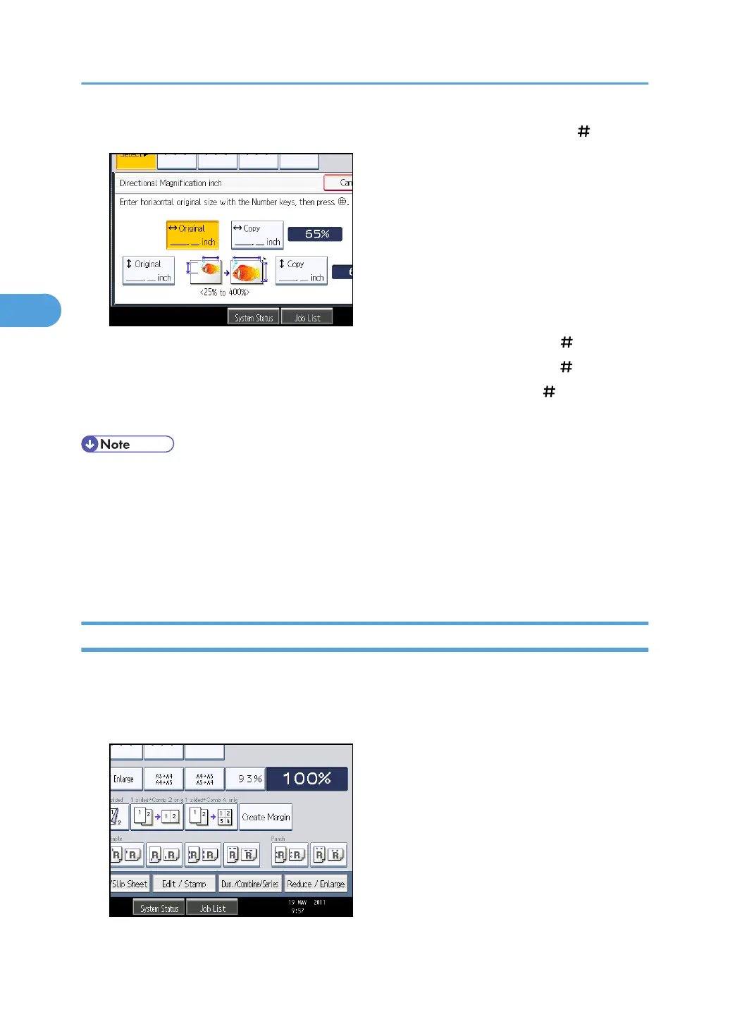 4. Enter the horizontal size of the copy with the number keys, and then press [ ].