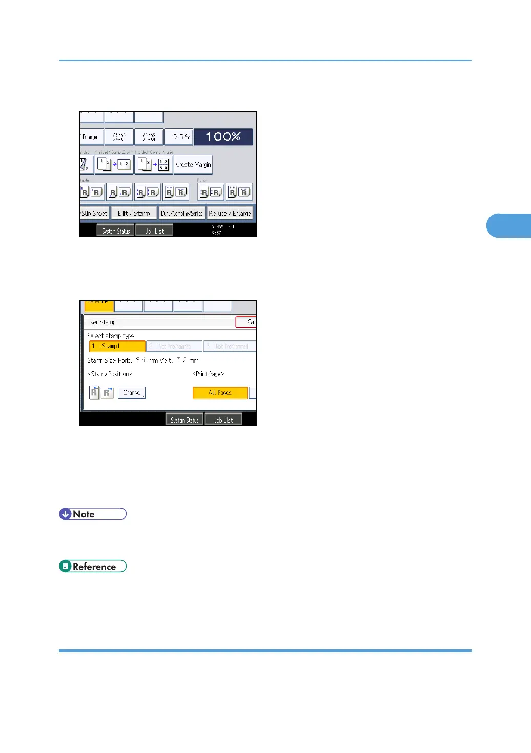 • You can change the settings for User Stamp under Stamp in User Tools. For details about Stamp,