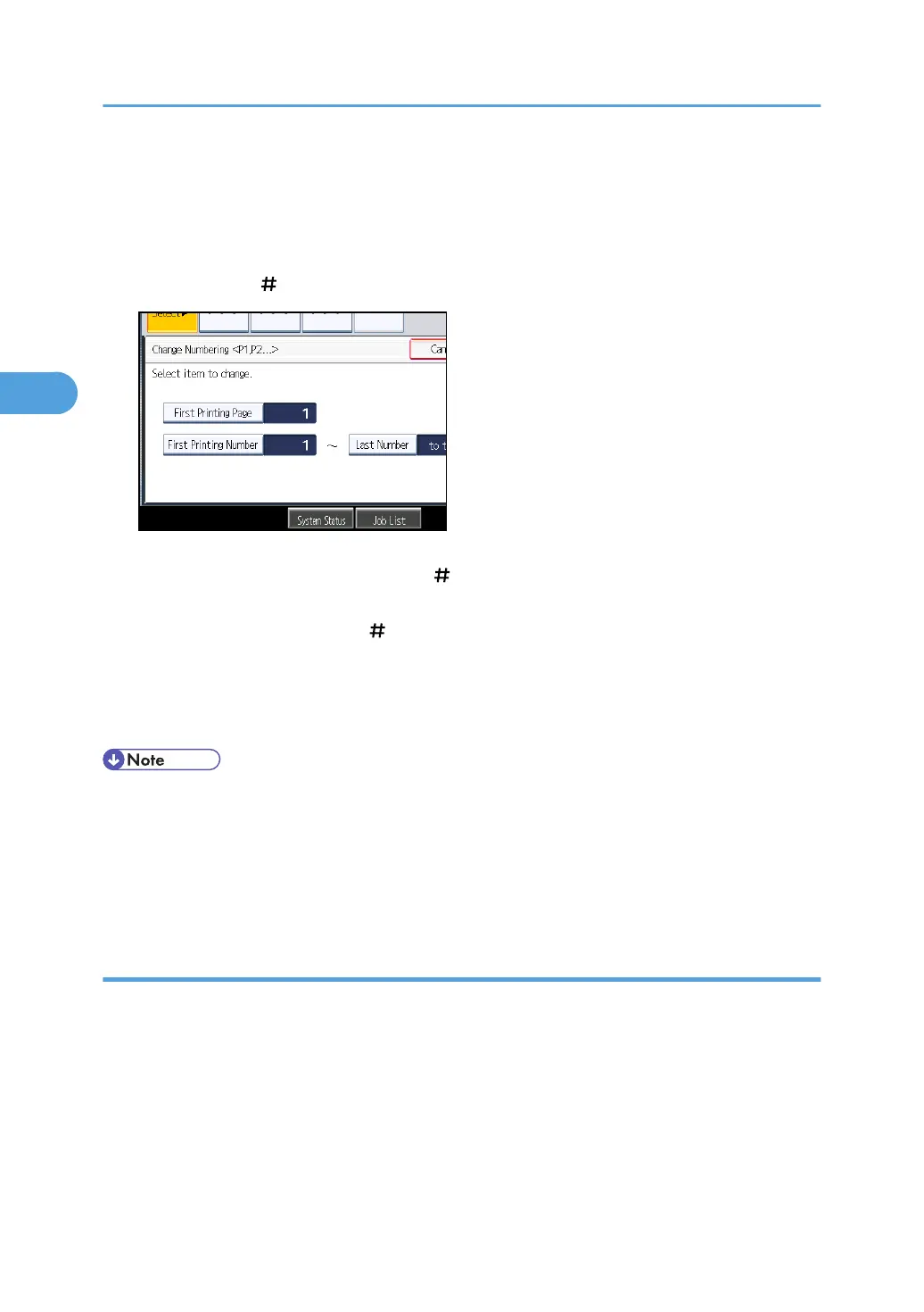 2. Press [First Printing Page], enter the original sheet number from which to start printing,