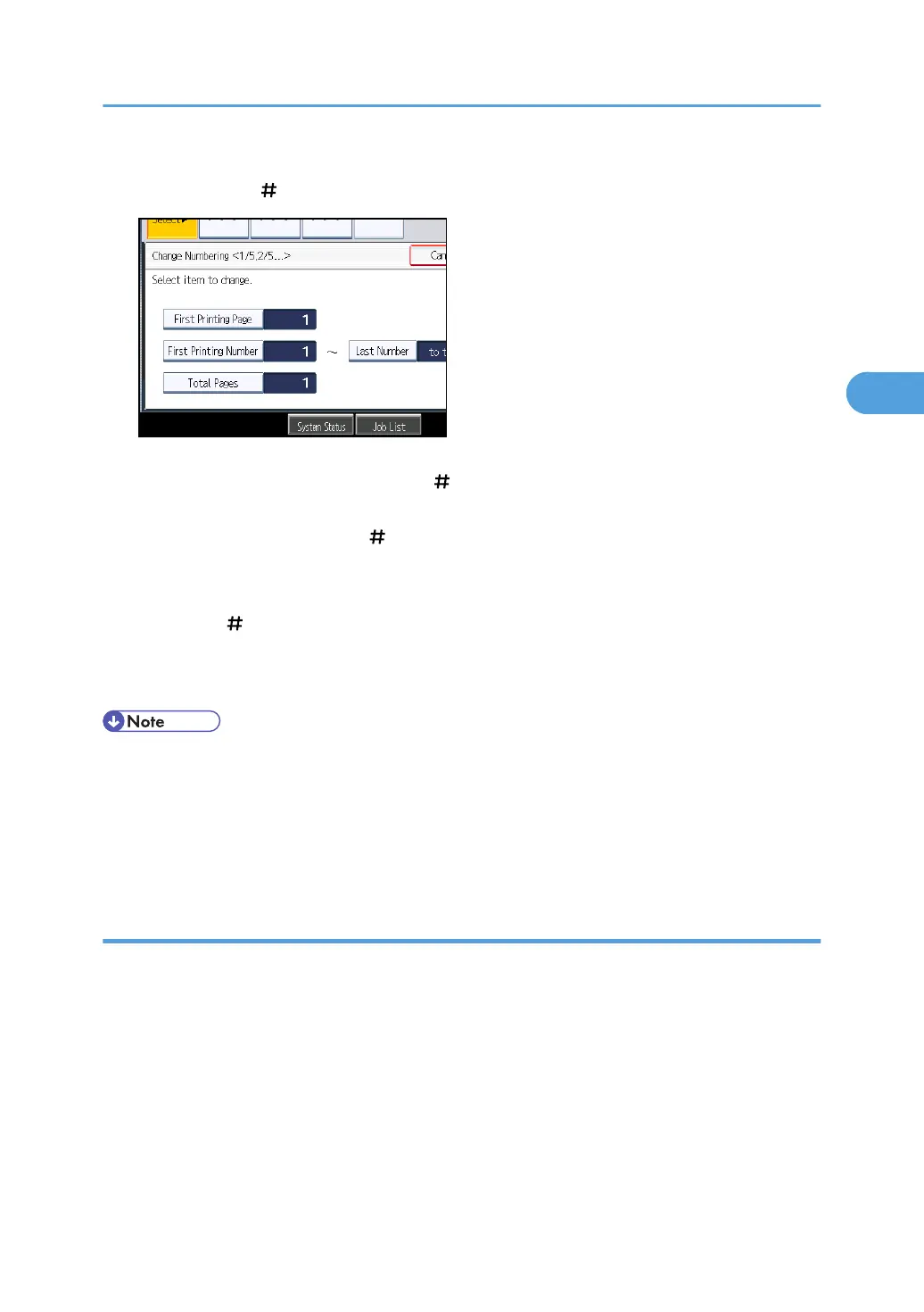 You can set a value from 1 to 9999 for [First Printing Page], [First Printing Number], [Last Number],