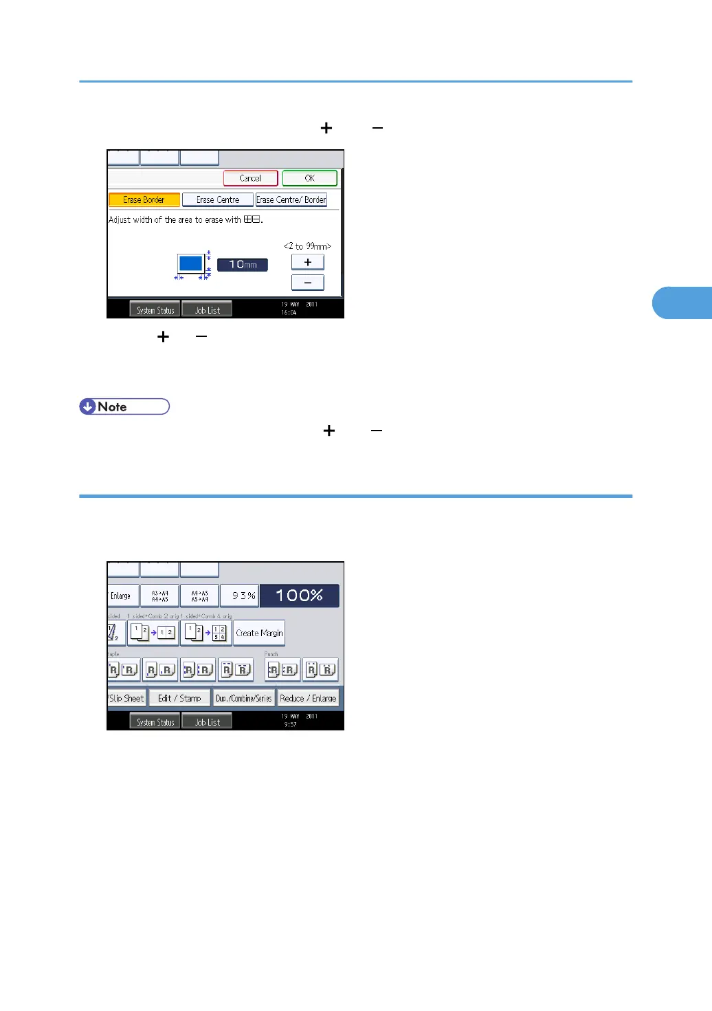 6. Specify an erase border width with [ ] and [ ].