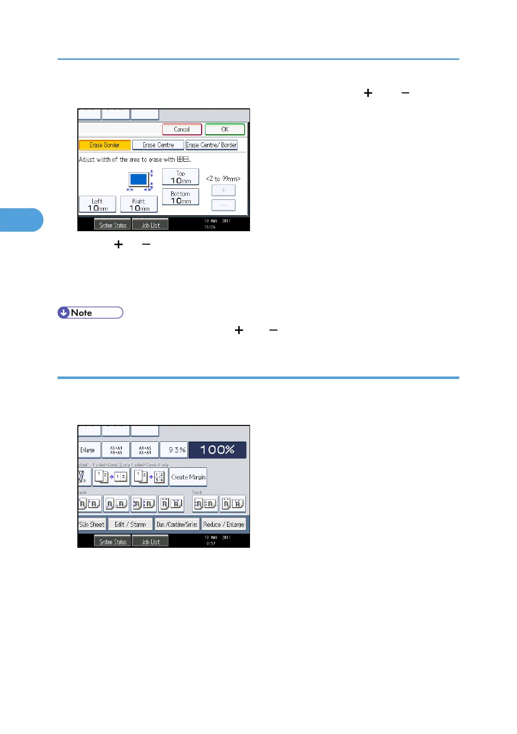 Pressing [ ] or [ ] changes the width in increments of 1 mm (0.1 inches). Pressing and holding